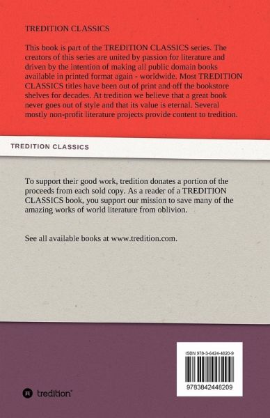 This book is part of the TREDITION CLASSICS series. The creators of this series are united by passion for literature and driven by the intention of making all public domain books available in printed format again - worldwide. At tredition we believe that a great book never goes out of style. Several mostly non-profit literature projects provide content to tredition. To support their good work, tredition donates a portion of the proceeds from each sold copy. As a reader of a TREDITION CLASSICS book, you support our mission to save many of the amazing works of world literature from oblivion.