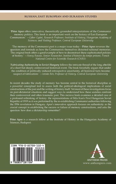 This book explores the memory of the First Hungarian Soviet Republic of 1919, which proved crucial for communist Hungarian political culture throughout the twentieth century. Apor takes an innovative approach to understudied aspects of European memory cultures, focusing particularly on how a dictatorship remembers and the concept of authenticity.