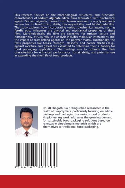 This research focuses on the morphological, structural, and functional characteristics of sodium alginate edible films fabricated with biochemical agents. Sodium alginate, derived from brown seaweed, is a polysaccharide known for its film-forming ability, biocompatibility, and biodegradability. The study explores how incorporating various biochemical agents, such as ferulic acid, influences the physical and mechanical properties of these films. Morphologically, the films are examined for surface texture and homogeneity. Structurally, the analysis includes molecular interactions and the impact of cross-linking agents on the polymer matrix. Functionally, the films' properties like tensile strength, elasticity, and barrier abilities (e.g., against moisture and gases) are evaluated to determine their suitability for food packaging applications. The findings aim to optimize the film's characteristics for enhanced performance, sustainability, and potential use in extending the shelf life of food products.
