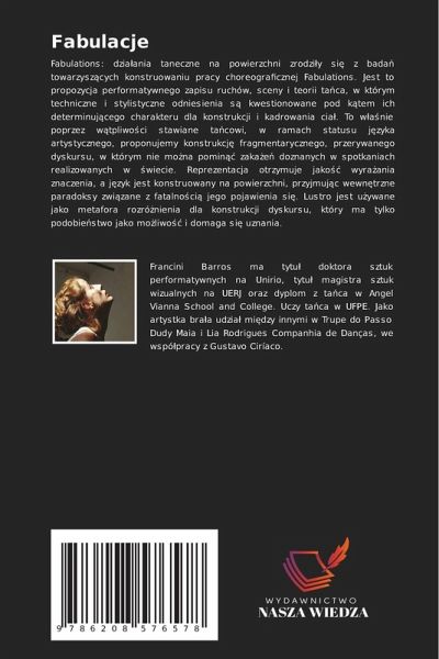 Fabulations: dziäania taneczne na powierzchni zrodzi¿y si¿ z badä towarzysz¿cych konstruowaniu pracy choreograficznej Fabulations. Jest to propozycja performatywnego zapisu ruchów, sceny i teorii täca, w którym techniczne i stylistyczne odniesienia s¿ kwestionowane pod k¿tem ich determinuj¿cego charakteru dla konstrukcji i kadrowania ciä. To w¿änie poprzez w¿tpliwo¿ci stawiane täcowi, w ramach statusu j¿zyka artystycznego, proponujemy konstrukcj¿ fragmentarycznego, przerywanego dyskursu, w którym nie mo¿na pomin¿¿ zakäe¿ doznanych w spotkaniach realizowanych w ¿wiecie. Reprezentacja otrzymuje jako¿¿ wyräania znaczenia, a j¿zyk jest konstruowany na powierzchni, przyjmuj¿c wewn¿trzne paradoksy zwi¿zane z fatalno¿ci¿ jego pojawienia si¿. Lustro jest u¿ywane jako metafora rozró¿nienia dla konstrukcji dyskursu, który ma tylko podobie¿stwo jako mo¿liwo¿¿ i domaga si¿ uznania.
