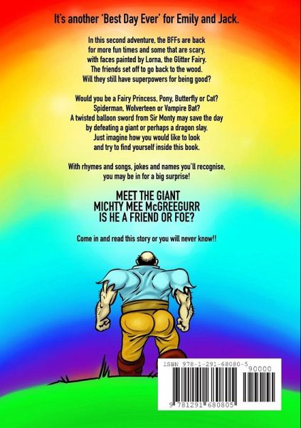 It's another "Best Day Ever" for Emily and Jack. In this second adventure, the BFFs are back for more fun times and some that are scary with faces painted by Lorna, the Glitter Fairy. The friends set off to go back to the wood but will they still have superpowers for being good? Would you be a Fairy Princess, Pony, Butterfly or Cat? Spiderman, Wolverteen or Vampire Bat? A twisted balloon sword from Sir Monty may save the day by defeating a giant or perhaps a dragon slay... Just imagine how you would like to look and try to find yourself inside this book. With rhymes and songs, jokes and names you'll recognise, you may be in for a big surprise! MEET THE GIANT... "MICHTY MEE McGREEGURR"... IS HE A FRIEND OR FOE? Come in and read this story or you will never know!!