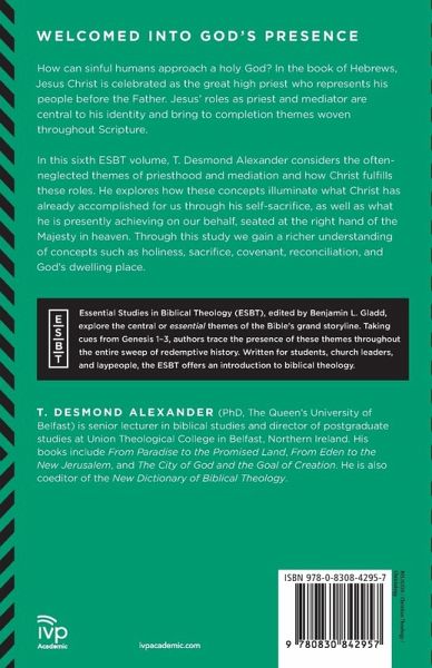 How can sinful humans approach a holy God? In this ESBT volume, T. Desmond Alexander considers the often-neglected themes of priesthood and mediation and how Christ fulfills these roles. Through this study, students, church leaders, and laypeople alike will gain a richer understanding of concepts such as holiness, sacrifice, covenant, reconciliation, and God's dwelling place.
