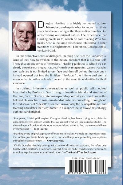 In this distinctive series of dialogues, Douglas Harding, author, philosopher, and mystic, discusses the fundamental issue of life: how to awaken to the natural freedom that is our true self. Through a unique series of 'exercises,' Harding guides us to where we can clearly perceive our original nature. From this vantage point, we see that who we really are is not limited to our face and the self behind the face but is instead opened out into the limitless 'No-Face,' the infinite and eternal essence that is both absolutely free and at the same time identified with all existence. In spirited, intimate conversations as well as public talks, Face to No-Face offers us a special opportunity to come to know this beloved philosopher in an informal and often humorous setting. Throughout, the rediscovery of 'oneself' by oneself is invariably the principal theme, and Harding articulates the 'way home' in a manner that is always refreshingly authentic and original.