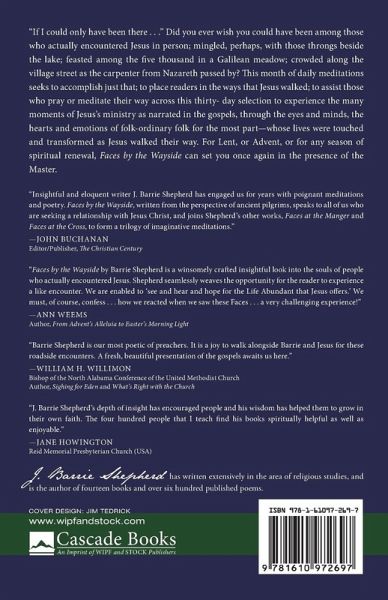 "If I could only have been there . . ." Did you ever wish you could have been among those who actually encountered Jesus in person; mingled, perhaps, with those throngs beside the lake; feasted among the five thousand in a Galilean meadow; crowded along the village street as the carpenter from Nazareth passed by? This month of daily meditations seeks to accomplish just that; to place readers in the ways that Jesus walked; to assist those who pray or meditate their way across this thirty-day selection to experience the many moments of Jesus's ministry as narrated in the gospels, through the eyes and minds, the hearts and emotions of folk-ordinary folk for the most part- whose lives were touched and transformed as Jesus walked their way. For Lent, or Advent, or for any season of spiritual renewal, Faces by the Wayside can set you once again in the presence of the Master.