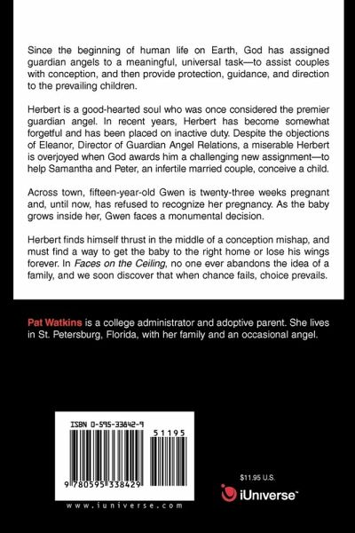 Since the beginning of human life on Earth, God has assigned guardian angels to a meaningful, universal task--to assist couples with conception, and then provide protection, guidance, and direction to the prevailing children. Herbert is a good-hearted soul who was once considered the premier guardian angel. In recent years, Herbert has become somewhat forgetful and has been placed on inactive duty. Despite the objections of Eleanor, Director of Guardian Angel Relations, a miserable Herbert is overjoyed when God awards him a challenging new assignment--to help Samantha and Peter, an infertile married couple, conceive a child. Across town, fifteen-year-old Gwen is twenty-three weeks pregnant and, until now, has refused to recognize her pregnancy. As the baby grows inside her, Gwen faces a monumental decision. Herbert finds himself thrust in the middle of a conception mishap, and must find a way to get the baby to the right home or lose his wings forever. In Faces on the Ceiling, no one ever abandons the idea of a family, and we soon discover that when chance fails, choice prevails.