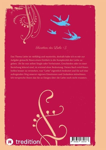 So haben Sie das Thema "Liebe" noch nie betrachtet. Egal in welchem Zusammenhang, Liebe ist unser stetiger Begleiter im Leben, manchmal durch Liebeskummer, oder einfach unsere Selbstliebe. Lernen Sie Sich und die Liebe mit diesem Buch besser kennen.