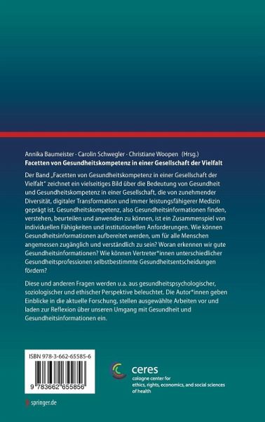 Der Band "Facetten von Gesundheitskompetenz in einer Gesellschaft der Vielfalt" zeichnet ein vielseitiges Bild über die Bedeutung von Gesundheit und Gesundheitskompetenz in einer Gesellschaft, die von zunehmender Diversität, digitaler Transformation und immer leistungsfähigerer Medizin geprägt ist. Gesundheitskompetenz, also Gesundheitsinformationen finden, verstehen, beurteilen und anwenden zu können, ist ein Zusammenspiel von individuellen Fähigkeiten und institutionellen Anforderungen. Wie können Gesundheitsinformationen aufbereitet werden, um für alle Menschen angemessen zugänglich und verständlich zu sein? Woran erkennen wir gute Gesundheitsinformationen? Wie können VertreterInnen unterschiedlicher Gesundheitsprofessionen selbstbestimmte Gesundheitsentscheidungen fördern? Diese und anderen Fragen werden u.a. aus gesundheitspsychologischer, soziologischer und ethischer Perspektive beleuchtet. Die AutorInnen geben Einblicke in die aktuelle Forschung, stellen ausgewählte Arbeiten vor und laden zur Reflexion über unseren Umgang mit Gesundheit und Gesundheitsinformationen ein.