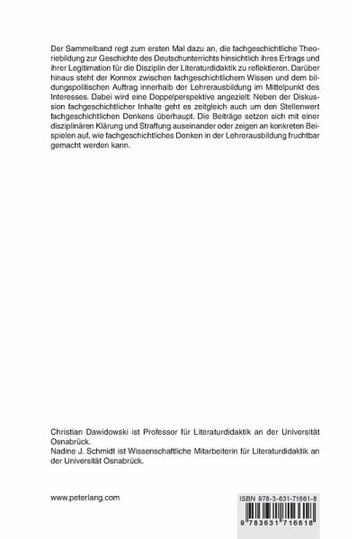 Der Sammelband regt zum ersten Mal dazu an, die fachgeschichtliche Theoriebildung zur Geschichte des Deutschunterrichts hinsichtlich ihres Ertrags und ihrer Legitimation für die Disziplin der Literaturdidaktik zu reflektieren. Darüber hinaus steht der Konnex zwischen fachgeschichtlichem Wissen und dem bildungspolitischen Auftrag innerhalb der Lehrerausbildung im Mittelpunkt des Interesses. Dabei wird eine Doppelperspektive angezielt: Neben der Diskussion fachgeschichtlicher Inhalte geht es zeitgleich auch um den Stellenwert fachgeschichtlichen Denkens überhaupt. Die Beiträge setzen sich mit einer disziplinären Klärung und Straffung auseinander oder zeigen an konkreten Beispielen auf, wie fachgeschichtliches Denken in der Lehrerausbildung fruchtbar gemacht werden kann.