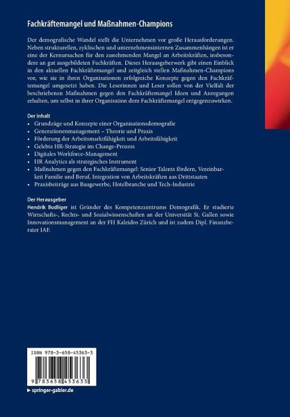 Grundzüge und Konzepte einer OrganisationsdemografieGenerationenmanagement - Theorie und PraxisFörderung der Arbeitsmarktfähigkeit und ArbeitsfähigkeitGelebte HR-Strategie im Change-ProzessDigitales Workforce-ManagementHR Analytics als strategisches InstrumentMaßnahmen gegen den Fachkräftemangel: Senior Talents fördern, Vereinbarkeit Familie und Beruf, Integration von Arbeitskräften aus DrittstaatenPraxisbeiträge aus Baugewerbe, Hotelbranche und Tech-Industrie