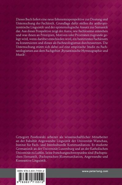 Dieses Buch liefert eine neue Erkenntnisperspektive zur Deutung und Untersuchung der Fachlexik. Grundlage dafür stellen die anthropozentrische Linguistik und der epistemologische Ansatz zur Semantik dar. Aus dieser Perspektive zeigt der Autor, wie Fachlexeme entstehen und was ihnen an Prinzipien, Motiven oder Prioritäten zugrunde gelegt wird, wenn darüber entschieden wird, ein bestimmtes Fachlexem zu konstruieren und dieses als Fachneologismus durchzusetzen. Die Untersuchung stützt sich dabei auf eine empirische Studie zu Fachneologismen aus dem Fachgebiet «Byzantinische Hymnographie und Musik».