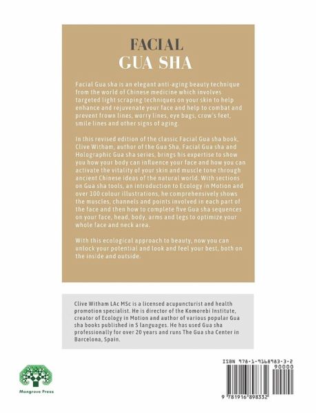 Facial Gua sha is an elegant anti-aging beauty technique from the world of Chinese medicine which involves targeted light scraping techniques on your skin to help enhance and rejuvenate your face and help to combat and prevent frown lines, worry lines, eye bags, crow's feet, smile lines and other signs of aging. In this revised edition of the classic Facial Gua sha book, Clive Witham, author of the Gua Sha, Facial Gua sha and Holographic Gua sha series, brings his expertise to show you how your body can influence your face and how you can activate the vitality of your skin and muscle tone through ancient Chinese ideas of the natural world. With sections on Gua sha tools, an introduction to Ecology in Motion and over 100 colour illustrations, he comprehensively shows the muscles, channels and points involved in each part of the face and then how to complete five Gua sha sequences on your face, head, body, arms and legs to optimize your whole face and neck area. With this ecological approach to beauty, now you can unlock your potential and look and feel your best, both on the inside and outside. Clive Witham LAc MSc is a licensed acupuncturist and health promotion specialist. He is director of the Komorebi Institute, creator of Ecology in Motion and author of various popular Gua sha books published in 5 languages. He has used Gua sha professionally for over 20 years and runs the Gua sha Center in Barcelona, Spain.
