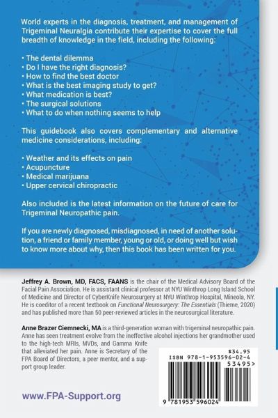 World experts in the diagnosis, treatment, and management of Trigeminal Neuralgia contribute their expertise to cover the full breadth of knowledge in the field, including the following topics: The dental dilemma Do I have the right diagnosis? How to find the best doctor What is the best imaging study to get? What medication is best? The surgical solutions What to do when nothing seems to help This guidebook also covers complementary and alternative medicine considerations, including: Weather and its effects on pain Acupuncture Medical marijuana Upper cervical chiropractic Also included is the latest information on the future of care for Trigeminal Neuropathic pain. If you are newly diagnosed, misdiagnosed, in need of another solution, a friend or family member, young or old, or doing well but wish to know more about why, then this book has been written for you.