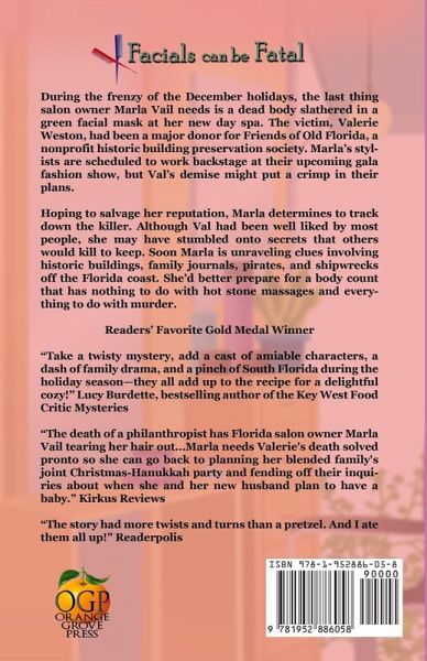 Salon sleuth Marla Vail determines to peel back the truth when a wealthy socialite has a fatal facial at her day spa in this stylish cozy mystery. During the frenzy of the December holidays, salon owner Marla Vail finds herself in deep trouble when a client dies at her day spa after a facial treatment gone wrong. The unfortunate victim, Valerie Weston, was a major benefactor for a historic preservation society. Marla's stylists are scheduled to work backstage at their upcoming fashion show, but Val's demise might put a crimp in their plans. Amidst the twinkling lights and festive cheer, Marla dives headfirst into the glittering world of high society. The stakes are higher than a well-stacked tower of towels as she vows to salvage her spa's reputation. With the body count rising and murder overshadowing hot stone massages, she gives her investigation the full spa treatment. She must comb through the tangled strands of Val's life to peel back the layers of lies and uncover secrets from the past. Soon Marla realizes someone would kill to keep those truths buried. Can she expose the culprit before her holiday season hits another deadly snag? Readers' Favorite Gold Medal Winner Royal Palm Literary Awards Finalist "Take a twisty mystery, add a cast of amiable characters, a dash of family drama, and a pinch of South Florida during the holiday season-they all add up to the recipe for a delightful cozy!" -Lucy Burdette, bestselling author of the Key West Food Critic Mysteries