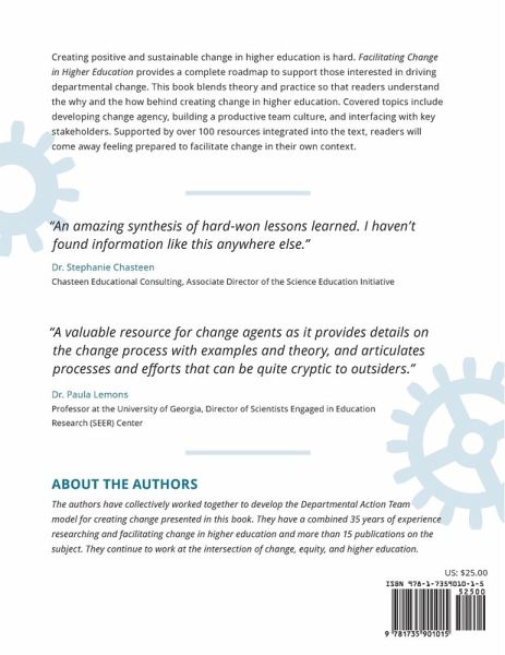 Creating positive and sustainable change in higher education is hard. Facilitating Change in Higher Education provides a complete roadmap to support those interested in driving departmental change. This book blends theory and practice so that readers understand the why and the how behind creating change in higher education. Covered topics include developing change agency, building a productive team culture, and interfacing with key stakeholders. Supported by over 100 resources integrated into the text, readers will come away feeling prepared to facilitate change in their own context. For more information, please visit dat-project.org The authors (Courtney Ngai, Joel C. Corbo, Karen L. Falkenberg, Chris Geanious, Alanna Pawlak, Mary E. Pilgrim, Gina M. Quan, Daniel L. Reinholz, Clara Smith, and Sarah B. Wise) have collectively worked together to develop the Departmental Action Team model for creating change presented in this book. They have a combined 35 years of experience researching and facilitating change in higher education and more than 15 publications on the subject. They continue to work at the intersection of change, equity, and higher education.