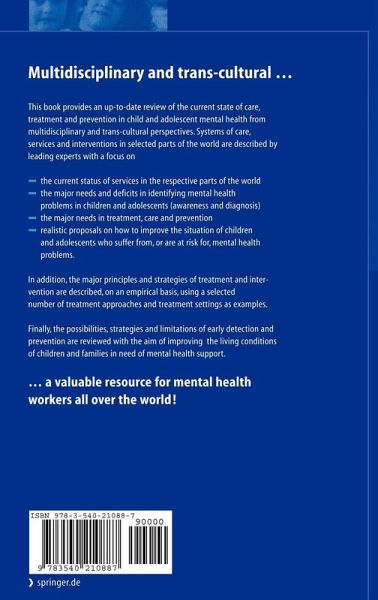 This book provides an up-to-date review of the current state of care, treatment and prevention in child and adolescent mental health from multidisciplinary and trans-cultural perspectives. Systems of care, services and interventions in selected parts of the world are described by leading experts with a focus on