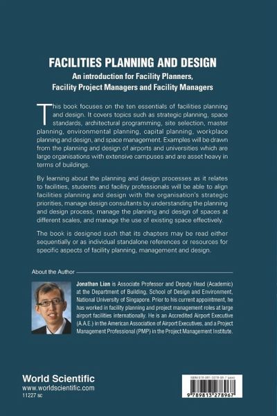 This book focuses on the ten essentials of facilities planning and design. It covers topics such as strategic planning, space standards, architectural programming, site selection, master planning, environmental planning, capital planning, workplace planning and design, and space management. Examples will be drawn from the planning and design of airports and universities which are large organisations with extensive campuses and are asset heavy in terms of buildings. By learning about the planning and design processes as it relates to facilities, students and facility professionals will be able to align facilities planning and design with the organisation's strategic priorities, manage design consultants by understanding the planning and design process, manage the planning and design of spaces at different scales, and manage the use of existing space effectively. The book is designed such that its chapters may be read either sequentially or as individual standalone references or resources for specific aspects of facility planning, management and design.