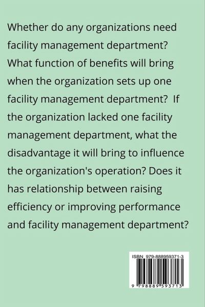 I write this book aims to hope any organization leaders can attempt to apply psychological methods to predict whether their in-house facility management service is enough or/and human resource management strategy and training course program strategies which both have relationship to influence their employees' productive efficiency and service performance in order to achieve aim to raise more satisfactory feeling to their customers. I believe that effective facility management can improve better workplace environment to influence employee individual productive efficiency raising as well as effective human resource training course program can improve employee individual service performance in order to achieve customers to feel more satisfactory service performance in consequence for the organization's service.