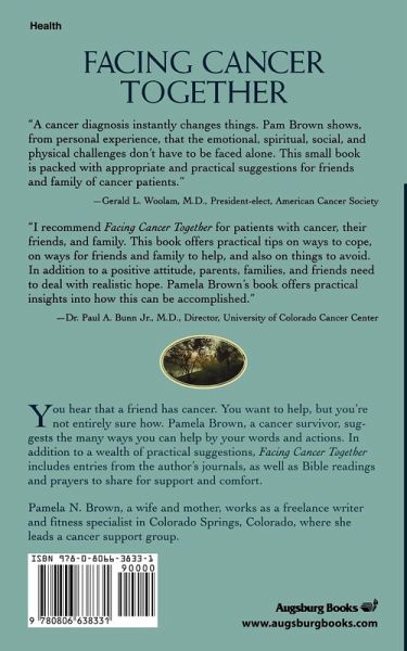 You hear that a friend has cancer. You want to help, but you're not entirely sure how. Pamela Brown, a cancer survivor, suggests the many ways you can help by your words and actions. In addition to a wealth of practical suggestions, Facing Cancer Together includes entries from the author's journals, as well as Bible readings and prayers to share for support and comfort.