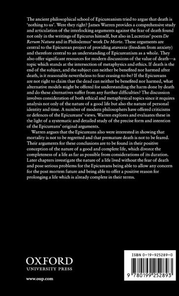 The ancient philosophical school of Epicureanism tried to argue that death is 'nothing to us'. This book examines the arguments they offered and evaluates their success, setting them against modern philosophical accounts of how death can be a harm. It also questions whether a life free from all fear of death is an attractive option.