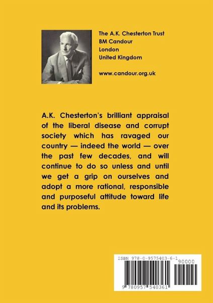 A. K. Chesterton's brilliant appraisal of the Liberal disease and corrupt society which has ravaged our country - indeed the world - over the past few decades, and will continue to do so unless and until we get a grip on ourselves and adopt a more rational, responsible and purposeful attitude toward life and its problems.