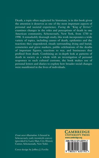 In this book, death, a topic often neglected by historians, is given the attention it deserves as one of the most important aspects of personal and societal experience. Facing the 'King of Terrors' examines changes in the roles and perceptions of death in one American community, Schenectady, New York, from 1750 to 1990. A remarkably thorough study, this work incorporates a wide variety of topics, including causes of death, epidemics and the reactions they engender, rituals surrounding dying and burial, cemeteries and grave markers, public celebrations of the deaths of important figures, reactions to war, and businesses that profit from death. Combining an in-depth look at patterns of death in society as a whole with an investigation of personal responses to such cultural customs, the book makes use of personal letters and diaries to explore how broader social changes were manifested in the lives of individuals.