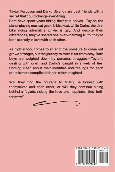 Taylor Ferguson and Darko Ulyanov are best friends with a secret that could change everything. Both have spent years hiding their true selves-Taylor, the piano-playing musical geek, is bisexual, while Darko, the dirt-bike riding adrenaline junkie, is gay. And despite their differences, they've shared one overwhelming truth: they're both secretly in love with each other. As high school comes to an end, the pressure to come out grows stronger, but the journey to truth is far from easy. Both boys are weighed down by personal struggles-Taylor's dealing with grief, and Darko's caught in a web of lies. Coming clean about their identities and feelings for each other is more complicated than either imagined. Will they find the courage to finally be honest with themselves and each other, or will they continue hiding behind a façade, risking the love and happiness they both deserve? A heartwarming and emotional story about friendship, love, and the challenges of coming out.