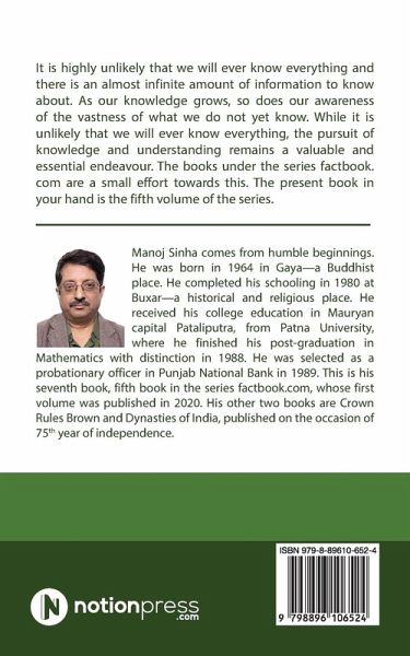 It is highly unlikely that we will ever know everything and there is an almost infinite amount of information to know about. As our knowledge grows, so does our awareness of the vastness of what we do not yet know. While it is unlikely that we will ever know everything, the pursuit of knowledge and understanding remains a valuable and essential endeavour. The books under the series factbook.com are a small effort towards this. The present book in your hand is the fifth volume of the series.
