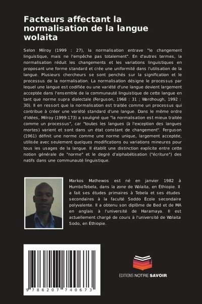 Selon Milroy (1999 : 27), la normalisation entrave "le changement linguistique, mais ne l'empêche pas totalement". En d'autres termes, la normalisation réduit les changements et les variations linguistiques en proposant une forme standard et crée une uniformité dans l'utilisation de la langue. Plusieurs chercheurs se sont penchés sur la signification et le processus de la normalisation. La normalisation désigne le processus par lequel une langue est codifiée ou une variété d'une langue devient largement acceptée dans l'ensemble de la communauté linguistique de cette langue en tant que norme supra dialectale (Ferguson, 1968 : 31 ; Wardhough, 1992 : 30). Il en ressort que la normalisation est traitée comme un processus qui contribue à créer une variété standard d'une langue. Dans le même ordre d'idées, Milroy (1999:173) a souligné que "la normalisation est mieux traitée comme un processus", car "toutes les langues (à l'exception des langues mortes) varient et sont dans un état constant de changement". Ferguson (1961) définit une norme comme une norme unique, largement acceptée, utilisée avec seulement quelques modifications ou variations mineures pour tous les usages de la langue. Il établit une distinction explicite entre cette notion générale de "norme" et le degré d'alphabétisation ("écriture") des natifs dans une communauté linguistique.