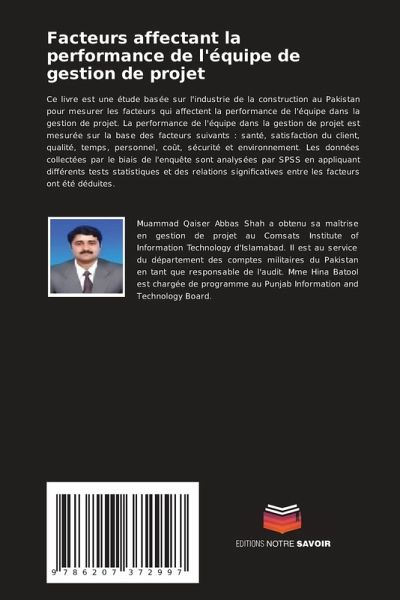 Ce livre est une étude basée sur l'industrie de la construction au Pakistan pour mesurer les facteurs qui affectent la performance de l'équipe dans la gestion de projet. La performance de l'équipe dans la gestion de projet est mesurée sur la base des facteurs suivants : santé, satisfaction du client, qualité, temps, personnel, coût, sécurité et environnement. Les données collectées par le biais de l'enquête sont analysées par SPSS en appliquant différents tests statistiques et des relations significatives entre les facteurs ont été déduites.