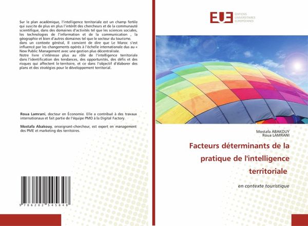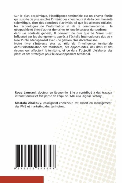 Sur le plan académique, l'intelligence territoriale est un champ fertile qui suscite de plus en plus l'intérêt des chercheurs et de la communauté scientifique, dans des domaines d'activités tel que les sciences sociales, les technologies de l'information et de la communication , la géographie et bien d'autres domaines tel que le secteur du tourisme.dans un contexte général, Il convient de dire que Le Maroc s'est influencé par les changements opérés à l'échelle internationale dus au « New Public Management avec une gestion plus décentralisée. Notre livre s'intéresse plus au rôle de l'intelligence territoriale dans l'identification des tendances, des opportunités, des défis et des risques qui affectent le territoire, et ce dans l'objectif d'élaborer des plans et des stratégies pour le développement territorial.