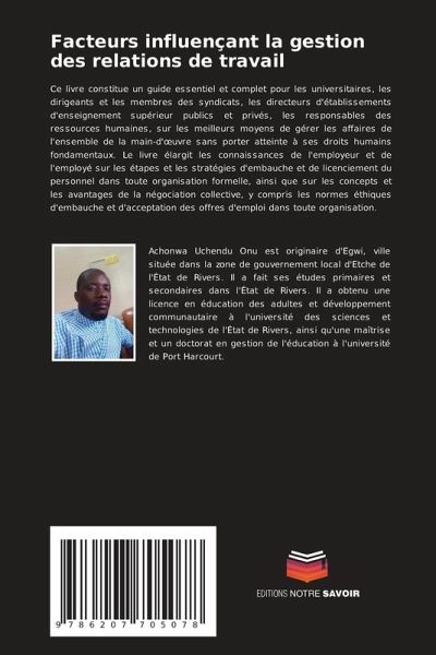 Ce livre constitue un guide essentiel et complet pour les universitaires, les dirigeants et les membres des syndicats, les directeurs d'établissements d'enseignement supérieur publics et privés, les responsables des ressources humaines, sur les meilleurs moyens de gérer les affaires de l'ensemble de la main-d'oeuvre sans porter atteinte à ses droits humains fondamentaux. Le livre élargit les connaissances de l'employeur et de l'employé sur les étapes et les stratégies d'embauche et de licenciement du personnel dans toute organisation formelle, ainsi que sur les concepts et les avantages de la négociation collective, y compris les normes éthiques d'embauche et d'acceptation des offres d'emploi dans toute organisation.