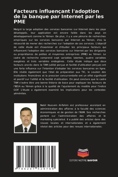 Malgré la large adoption des services bancaires sur Internet dans les pays développés, leur application est encore faible dans les pays en développement comme le Yémen. De plus, il y a une pénurie de recherches empiriques sur les services bancaires par Internet au Yémen, d'où la nécessité de mener des recherches sur l'adoption de ces services. L'objectif de cette étude est d'examiner et d'étudier les principaux facteurs qui influencent l'adoption des services bancaires sur Internet par les dirigeants ou propriétaires de petites et moyennes entreprises (PME) au Yémen. Le cadre de recherche comprend sept variables latentes, quatre variables exogènes et trois variables endogènes. Cette étude indique que deux facteurs ancrés dans le TAM (utilité perçue et facilité d'utilisation perçue) ont une forte influence sur l'intention d'adopter les services bancaires en ligne. Elle révèle également que l'état de préparation aux TIC, le soutien des institutions financières et la pression concurrentielle ont un effet significatif et positif sur l'utilité et la facilité d'utilisation. On peut conclure que le cadre TAM s'avère être une bonne théorie de base pour expliquer les facteurs de l'IBSA au Yémen grâce à la qualité de l'ajustement du modèle pour l'indice GOF. L'étude a également examiné les implications pour les contextes yéménites.
