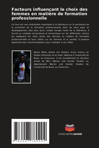 Ce livre est une contribution importante à la littérature sur la pertinence de la promotion de la formation professionnelle dans les deux pays en développement, bien plus qu'un simple compte rendu de la littérature. Il fournit un contexte socioculturel et économique sur les différentes raisons qui expliquent les choix variés des femmes en matière de formation professionnelle et leurs effets sur les femmes et la société. Il propose également des recommandations pour remédier à ces effets.