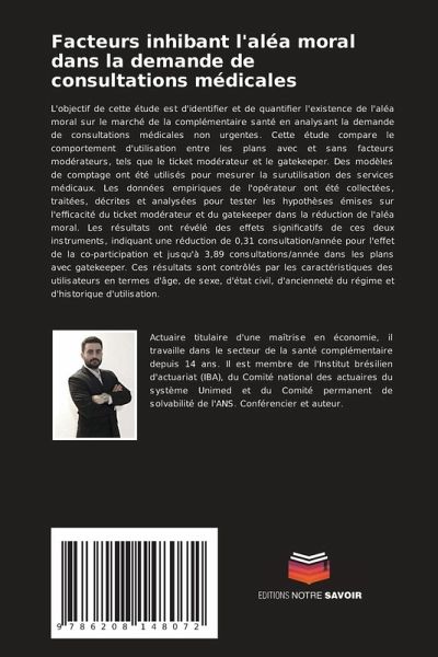 L'objectif de cette étude est d'identifier et de quantifier l'existence de l'aléa moral sur le marché de la complémentaire santé en analysant la demande de consultations médicales non urgentes. Cette étude compare le comportement d'utilisation entre les plans avec et sans facteurs modérateurs, tels que le ticket modérateur et le gatekeeper. Des modèles de comptage ont été utilisés pour mesurer la surutilisation des services médicaux. Les données empiriques de l'opérateur ont été collectées, traitées, décrites et analysées pour tester les hypothèses émises sur l'efficacité du ticket modérateur et du gatekeeper dans la réduction de l'aléa moral. Les résultats ont révélé des effets significatifs de ces deux instruments, indiquant une réduction de 0,31 consultation/année pour l'effet de la co-participation et jusqu'à 3,89 consultations/année dans les plans avec gatekeeper. Ces résultats sont contrôlés par les caractéristiques des utilisateurs en termes d'âge, de sexe, d'état civil, d'ancienneté du régime et d'historique d'utilisation.