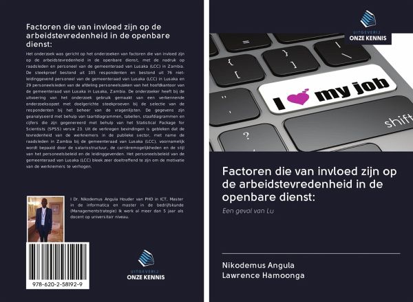 Het onderzoek was gericht op het onderzoeken van factoren die van invloed zijn op de arbeidstevredenheid in de openbare dienst, met de nadruk op raadsleden en personeel van de gemeenteraad van Lusaka (LCC) in Zambia. De steekproef bestond uit 105 respondenten en bestond uit 76 niet-leidinggevend personeel van de gemeenteraad van Lusaka (LCC) in Lusaka en 29 personeelsleden van de afdeling personeelszaken van het hoofdkantoor van de gemeenteraad van Lusaka in Lusaka, Zambia. De onderzoeker heeft bij de uitvoering van het onderzoek gebruik gemaakt van een verkennende onderzoeksopzet met doelgerichte steekproeven bij de selectie van de respondenten bij het beheer van de vragenlijsten. De gegevens zijn geanalyseerd met behulp van taartdiagrammen, tabellen, staafdiagrammen en cijfers die zijn gegenereerd met behulp van het Statistical Package for Scientists (SPSS) versie 23. Uit de verkregen bevindingen is gebleken dat de tevredenheid van de werknemers in de publieke sector, met name de raadsleden in Zambia bij de gemeenteraad van Lusaka (LCC), voornamelijk wordt bepaald door de salarisstructuur, de carrièremogelijkheden en de stijl van het personeelsbeleid en de leidinggevenden. Het personeelsbeleid van de gemeenteraad van Lusaka (LCC) bleek zeer doeltreffend te zijn om de motivatie van de werknemers te verhogen.
