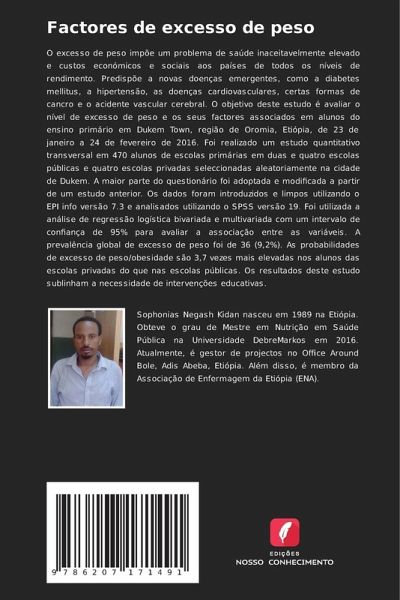 O excesso de peso impõe um problema de saúde inaceitavelmente elevado e custos económicos e sociais aos países de todos os níveis de rendimento. Predispõe a novas doenças emergentes, como a diabetes mellitus, a hipertensão, as doenças cardiovasculares, certas formas de cancro e o acidente vascular cerebral. O objetivo deste estudo é avaliar o nível de excesso de peso e os seus factores associados em alunos do ensino primário em Dukem Town, região de Oromia, Etiópia, de 23 de janeiro a 24 de fevereiro de 2016. Foi realizado um estudo quantitativo transversal em 470 alunos de escolas primárias em duas e quatro escolas públicas e quatro escolas privadas seleccionadas aleatoriamente na cidade de Dukem. A maior parte do questionário foi adoptada e modificada a partir de um estudo anterior. Os dados foram introduzidos e limpos utilizando o EPI info versão 7.3 e analisados utilizando o SPSS versão 19. Foi utilizada a análise de regressão logística bivariada e multivariada com um intervalo de confiança de 95% para avaliar a associação entre as variáveis. A prevalência global de excesso de peso foi de 36 (9,2%). As probabilidades de excesso de peso/obesidade são 3,7 vezes mais elevadas nos alunos das escolas privadas do que nas escolas públicas. Os resultados deste estudo sublinham a necessidade de intervenções educativas.