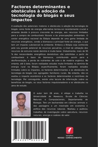 A avaliação dos potenciais motores e obstáculos à adoção da tecnologia do biogás como fonte de energia alternativa tornou-se recentemente crucial e atraente devido à procura crescente de energia, aos recursos limitados para a compra de combustíveis fósseis e às preocupações ambientais. O sector energético nacional da Etiópia depende de uma gama limitada de recursos energéticos, sendo a biomassa a principal fonte de energia, o que tem um impacto substancial no ambiente. Embora a Etiópia seja conhecida pelo seu grande potencial de recursos pecuários, o nível de utilização dos recursos de estrume neste domínio é muito baixo. Globalmente, mais de 95 % das necessidades energéticas domésticas são satisfeitas a partir de combustíveis à base de biomassa, contribuindo assim para a desflorestação, a perda de nutrientes do solo e de matéria orgânica. No entanto, até à data, foram realizados estudos muito limitados no domínio da energia rural na Etiópia; especificamente, foram realizados estudos limitados sobre os impactos, os factores determinantes e os obstáculos da tecnologia do biogás nos agregados familiares rurais. No entanto, não se avaliou o impacto económico e os factores determinantes e restritivos da tecnologia. Por conseguinte, existe uma lacuna de informação sobre os benefícios do biogás, os seus factores impulsionadores e os obstáculos na zona de estudo.