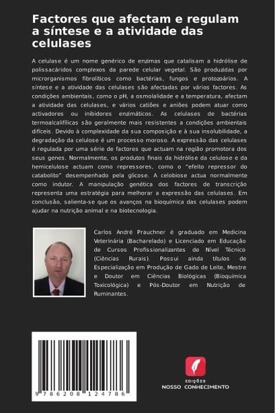 A celulase é um nome genérico de enzimas que catalisam a hidrólise de polissacáridos complexos da parede celular vegetal. São produzidas por microrganismos fibrolíticos como bactérias, fungos e protozoários. A síntese e a atividade das celulases são afectadas por vários factores. As condições ambientais, como o pH, a osmolalidade e a temperatura, afectam a atividade das celulases, e vários catiões e aniões podem atuar como activadores ou inibidores enzimáticos. As celulases de bactérias termoalcalifílicas são geralmente mais resistentes a condições ambientais difíceis. Devido à complexidade da sua composição e à sua insolubilidade, a degradação da celulose é um processo moroso. A expressão das celulases é regulada por uma série de factores que actuam na região promotora dos seus genes. Normalmente, os produtos finais da hidrólise da celulose e da hemicelulose actuam como repressores, como o ¿efeito repressor do catabolitö desempenhado pela glicose. A celobiose actua normalmente como indutor. A manipulação genética dos factores de transcrição representa uma estratégia para melhorar a expressão das celulases. Em conclusão, salienta-se que os avanços na bioquímica das celulases podem ajudar na nutrição animal e na biotecnologia.