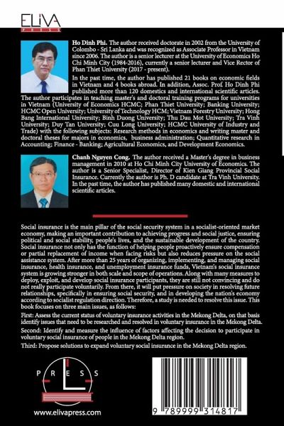 Social insurance is the main pillar of the social security system in a socialist-oriented market economy, making an important contribution to achieving progress and social justice, ensuring political and social stability, people's lives, and the sustainable development of the country. Social insurance not only has the function of helping people proactively ensure compensation or partial replacement of income when facing risks but also reduces pressure on the social assistance system. After more than 25 years of organizing, implementing, and managing social insurance, health insurance, and unemployment insurance funds, Vietnam's social insurance system is growing stronger in both scale and scope of operations. Along with many measures to deploy, exploit, and develop social insurance participants, they are still not convincing and do not really participate voluntarily. From there, it will put pressure on society in resolving future relationships, specifically in ensuring social security, and in developing the nation's economy according to socialist regulation direction. Therefore, a study is needed to resolve this issue. This book focuses on three main issues, as follows: First: Assess the current status of voluntary insurance activities in the Mekong Delta, on that basis identify issues that need to be researched and resolved in voluntary insurance in the Mekong Delta. Second: Identify and measure the influence of factors affecting the decision to participate in voluntary social insurance of people in the Mekong Delta region. Third: Propose solutions to expand voluntary social insurance in the Mekong Delta region. The Study uses a non-probability, convenient and quota sampling method through a survey of 370 people in the Mekong Delta as a database to test the research hypotheses. Through the PLS-SEM model, with Bootstrap technique and with reference to 10 domestic and 33 foreign studies on Voluntary Social Insurance participation intention, the authors have identified 7 important factors affecting Voluntary Social Insurance participation intention, including 5 indirect factors (Confidence in benefits, Evaluation of social feedback, Risk perception, Beliefs, Motivation) and 2 direct factors (Attitude toward, and subjective norms).