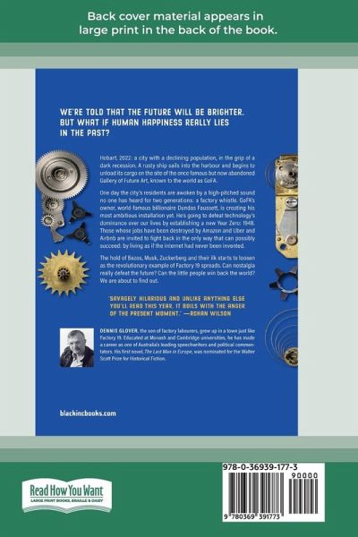 We're told that the future will be brighter. But what if human happiness really lies in the past? Hobart, 2022: a city with a declining population, in the grip of a dark recession. A rusty ship sails into the harbour and begins to unload its cargo on the site of the once famous but now abandoned Gallery of Future Art, known to the world as GoFA. One day the city's residents are awoken by a high-pitched sound no one has heard for two generations: a factory whistle. GoFA's owner, world-famous billionaire Dundas Faussett, is creating his most ambitious installation yet. He's going to defeat technology's dominance over our lives by establishing a new Year Zero: 1948. Those whose jobs have been destroyed by Amazon and Uber and Airbnb are invited to fight back in the only way that can possibly succeed: by living as if the internet had never been invented. The hold of Bezos, Musk, Zuckerberg and their ilk starts to loosen as the revolutionary example of Factory 19 spreads. Can nostalgia really defeat the future? Can the little people win back the world? We are about to find out.