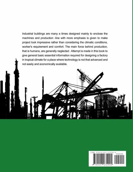 Industrial buildings are many times designed mainly to enclose the machines and production-line. More emphasis is given to make project look impressive rather than considering the climatic conditions, worker's requirement and comfort. The main force behind production, that is humans, are generally neglected . Attempt is made in this book to give general basic essential information required for designing a factory in tropical climate for a place where technology is not that advanced and not easily and economically available.