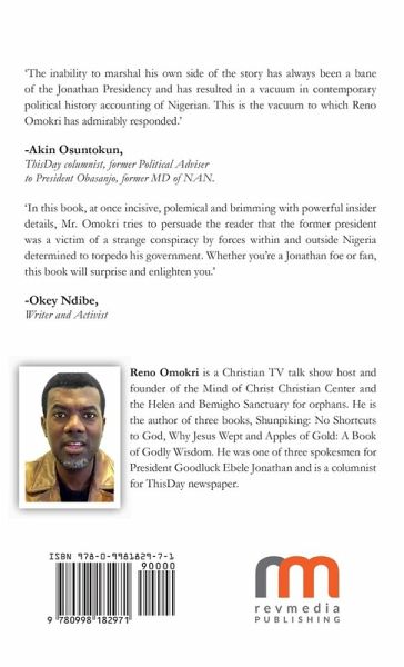 'The inability to marshal his own side of the story has always been a bane of the Jonathan Presidency and has resulted in a vacuum in contemporary political history accounting of Nigerian. This is the vacuum to which Reno Omokri has admirably responded.' -Akin Osuntokun, ThisDay columnist, former Political Adviser to President Obasanjo, former MD of NAN. 'In this book, at once incisive, polemical and brimming with powerful insider details, Mr. Omokri tries to persuade the reader that the former president was a victim of a strange conspiracy by forces within and outside Nigeria determined to torpedo his government. Whether you're a Jonathan foe or fan, this book will surprise and enlighten you.' -Okey Ndibe, Writer and Activist Reno Omokri is a Christian TV talk show host and founder of the Mind of Christ Christian Center and the Helen and Bemigho Sanctuary for orphans. He is the author of three books, Shunpiking: No Shortcuts to God, Why Jesus Wept and Apples of Gold: A Book of Godly Wisdom. He was one of three spokesmen for President Goodluck Ebele Jonathan and is a columnist for ThisDay newspaper. Reno Omokri is a Christian TV talk show host and founder of the Mind of Christ Christian Center and the Helen and Bemigho Sanctuary for orphans. He is the author of three books, Shunpiking: No Shortcuts to God, Why Jesus Wept and Apples of Gold: A Book of Godly Wisdom. He was one of three spokesmen for President Goodluck Ebele Jonathan and is a columnist for This Day newspaper.