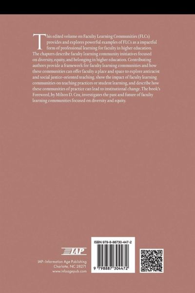 This edited book on Faculty Learning Communities (FLCs) provides and explores powerful examples of FLCs as a impactful form of professional learning for faculty in higher education. The chapters describe faculty learning community initiatives focused on diversity, equity, and belonging in higher education. Contributing authors provide a framework for faculty learning communities and how these communities can offer faculty a place and space to explore antiracist and social justice-oriented teaching. show the impact of faculty learning communities on teaching practices or student learning, and describe how these communities of practice can lead to institutional change. The book's foreword, by Milton D. Cox, investigates the past and future of faculty learning communities focused on diversity and equity.