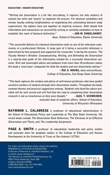 Raymond L. Calabrese is a professor of educational administration in the School of Educational Policy and Leadership at the Ohio State University. Calabrese is the author of five books and coauthor of four books. His recent stand alone books include The Dissertation Desk Reference; The Elements of an Effective Dissertation and Thesis; and The Leadership Assignment. Page A. Smith is a professor of educational leadership and policy studies and associate dean for graduate studies in the College of Education and Human Development at the University of Texas at San Antonio (UTSA).