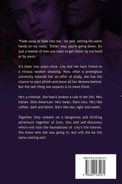 Being involved with the mafia has never been this dangerous... and hot! "Fade away or fade into me," he said, setting his warm hands on my waist. "Either way, you're going down. It's just a matter of how you want to get there; by my hand or by yours." It’s been two years since Lilly lost her best friend to a vicious random shooting. Now, after a prestigious university extends her an offer of study, she has the chance to start afresh and leave all her demons behind. But the last thing she expects is to meet Elliot. He's a criminal. She's hasn't broken a rule in her life. He's Italian. She's American. He's mean. She's nice. He's like coffee, dark and bitter. She's like tea, light and sweet. Together they embark on a dangerous and thrilling adventure together of love, loss and self-discovery which will rock the foundations of Lilly’s life forever. She knew who she was going in, but will she be the same coming out?