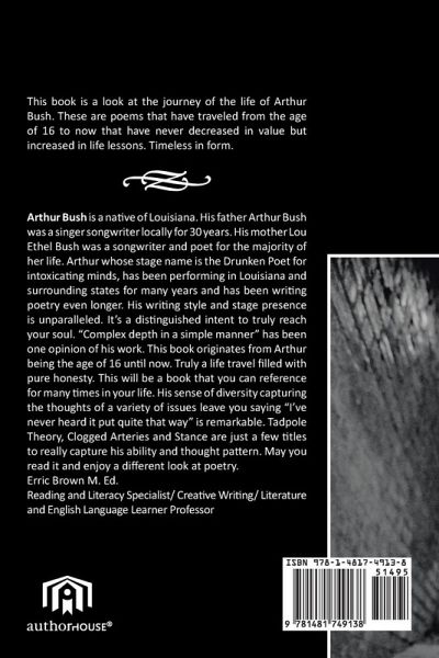 This book is a look at the journey of the life of Arthur Bush. These are poems that have traveled from the age of 16 to now that have never decreased in value but increased in life lessons. Timesless in form.