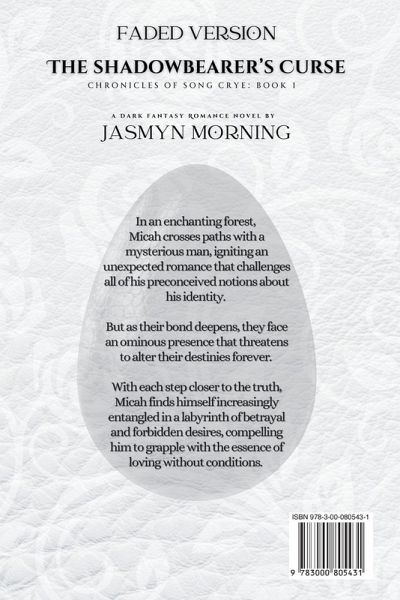 The Faded Version of "The Shadowbearer's Curse" provides a gentler reading experience while retaining the core of the original storyline. **NOTE: this is a special edition and NOT the original version In an enchanting forest, Micah crosses paths with a mysterious man, igniting an unexpected romance that challenges all of his preconceived notions about his identity. But as their bond deepens, they face an ominous presence that threatens to alter their destinies forever. With each step closer to the truth, Micah finds himself increasingly entangled in a labyrinth of betrayal and forbidden desires, compelling him to grapple with the essence of loving without conditions.