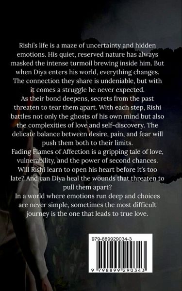 In a world where love often fades with time, Fading Flames of Affection tells the poignant yet inspiring tale of Rishi, a reserved and brilliant young man burdened by a painful past, and Diya, the fierce and compassionate girl who unexpectedly reignites the warmth in his heart. Their journey begins in the quiet corridors of school, where silent glances speak louder than words, and unspoken emotions burn brighter than confessions. But when fate stirs jealousy through a third wheel named Uvraj, Diya's growing love for Rishi finally erupts into a heartfelt confession that changes everything. In the shadows of ambition, sacrifice, and love, Rishi's fight becomes one of purpose-not just to leave a legacy, but to etch a memory that will outlive time itself. Torn between passion and pain, Fading Flames of Affection is a stirring narrative of first love, heartbreak, inner demons, and the fight to hold on when life tries to pull everything apart. It's a novel where romance meets reality, and where even in fading flames, affection continues to glow.