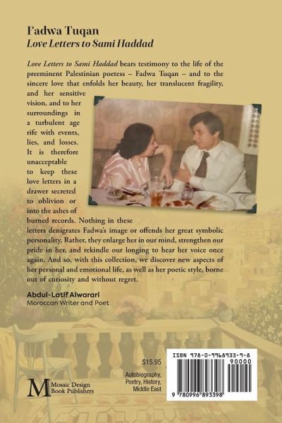Love Letters to Sami Haddad bears testimony to the life of the preeminent Palestinian poetess - Fadwa Tuqan - and to the sincere love that enfolds her beauty, her translucent fragility, and her sensitive vision, and to her surroundings in a turbulent age rife with events, lies, and losses. It is therefore unacceptable to keep these love letters in a drawer secreted to oblivion or into the ashes of burned records. Nothing in these letters denigrates Fadwa's image or offends her great symbolic personality. Rather, they enlarge her in our mind, strengthen our pride in her, and rekindle our longing to hear her voice once again. And so, with this collection, we discover new aspects of her personal and emotional life, as well as her poetic style, borne out of curiosity and without regret.