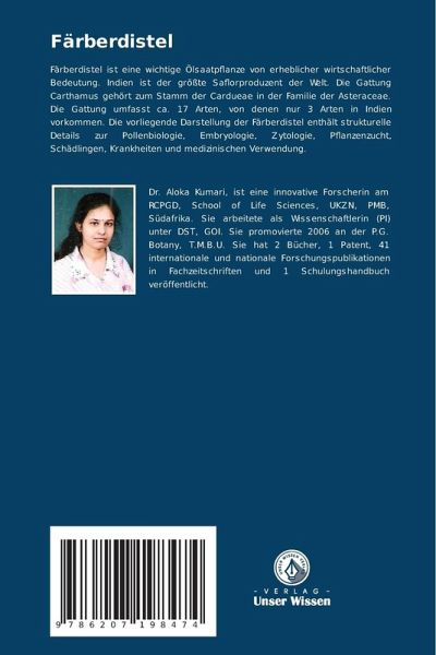 Färberdistel ist eine wichtige Ölsaatpflanze von erheblicher wirtschaftlicher Bedeutung. Indien ist der größte Saflorproduzent der Welt. Die Gattung Carthamus gehört zum Stamm der Cardueae in der Familie der Asteraceae. Die Gattung umfasst ca. 17 Arten, von denen nur 3 Arten in Indien vorkommen. Die vorliegende Darstellung der Färberdistel enthält strukturelle Details zur Pollenbiologie, Embryologie, Zytologie, Pflanzenzucht, Schädlingen, Krankheiten und medizinischen Verwendung.